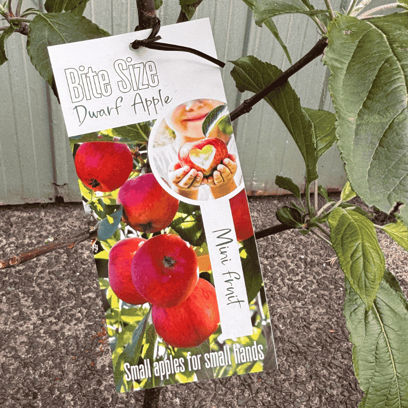 Apple Bite Size is a compact, semi-dwarf apple tree that produces small, crisp, and sweet snack-sized fruit—perfect for lunchboxes or fresh picking. Easy to grow and ideal for smaller gardens, it offers spring blossoms and reliable crops with minimal space required. Best with a pollination partner nearby.