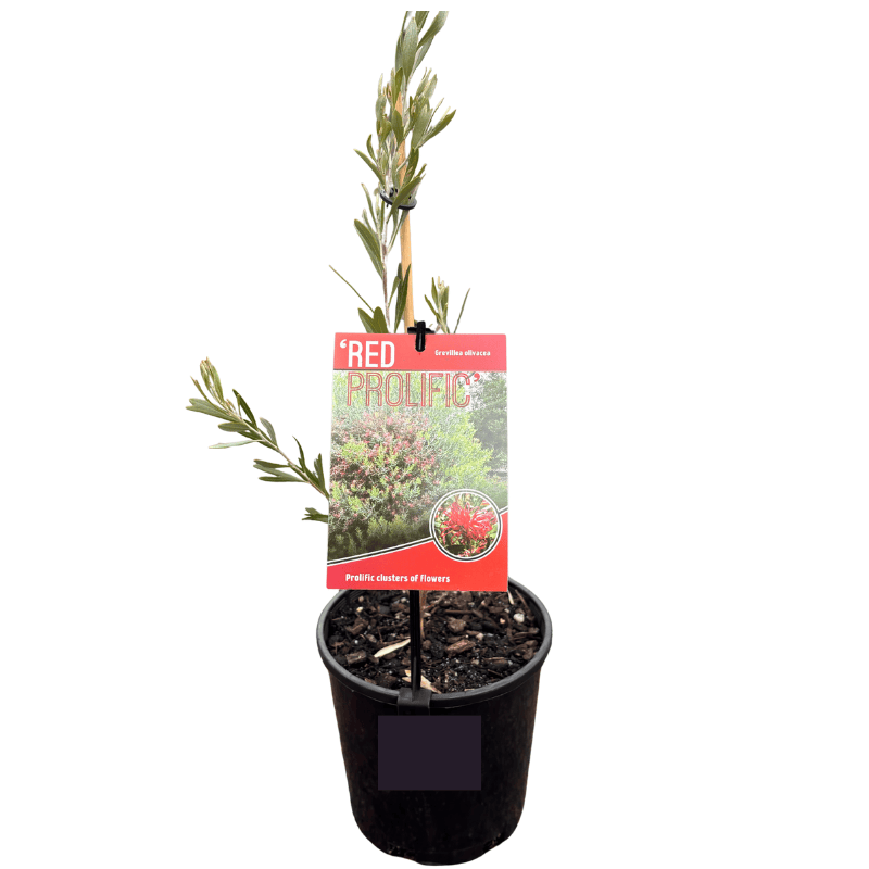Grevillea ‘Red Prolific’ is a vibrant native shrub that lights up your garden with spectacular clusters of rich red “spider”‑flowers from mid‐spring into early summer, making it a magnet for nectar‑loving birds. It thrives in full sun, prefers well‑drained soils (loam or sandy), and is particularly suited to coastal or dry gardens. With a dense and bushy habit, it’s ideal for informal hedging, feature planting or wildlife‑friendly native landscapes.