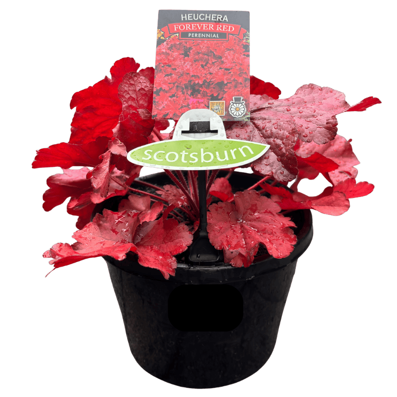 Heuchera is a versatile perennial prized for its vibrant, scalloped foliage in shades of burgundy, lime, amber, and silver. Its compact mounds of leaves add year-round colour and texture, while slender stems carry delicate, bell-shaped flowers in spring and summer. Ideal for borders, containers, or shady spots, Heuchera brings effortless elegance to any garden.