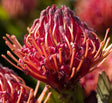 'Carnival Red' is a medium, hardy, evergreen shrub which has decorative small, coarse, leaves which are a lovely mid-green colour. In spring, a profusion of large, bright red, pin-cushion shaped flowers appear. The flowers can be used in floral arrangements as they hold their colour for long periods of time. Their flowers are highly bird attracting. Best used in native gardens, coastal gardens, general landscaping, pots or as a medium-sized hedge. Best grown in full sun and well-draining soil, will not grow in alkaline or boggy/clay soils. If planting into larger pots, make sure to use a native potting mix. Leucospermum Carnival Red has low water requirements once established in the garden. The first 12-18 months it is important to maintain good watering practices as this is vital to the plant's establishment.