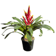 Bromeliads are striking tropical plants known for their vibrant, long-lasting flower bracts and unique rosette-shaped foliage. They thrive in bright, indirect light and prefer a warm, humid environment. Water into the central cup of the plant rather than the soil, allowing it to dry slightly between top-ups — avoid overwatering. Ideal for indoors or sheltered outdoor spots with good airflow. Well-draining soil is essential.