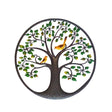 Hand painted colourful tree of life metal wall art with two yellow birds.